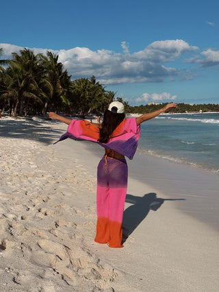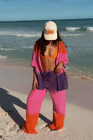 Beach Riot's Alex Pant in Coral Bay Sunset is an open-knit fabric with an oversized fit and drawstring waistband. Pair with the matching Ira Top for the full set.