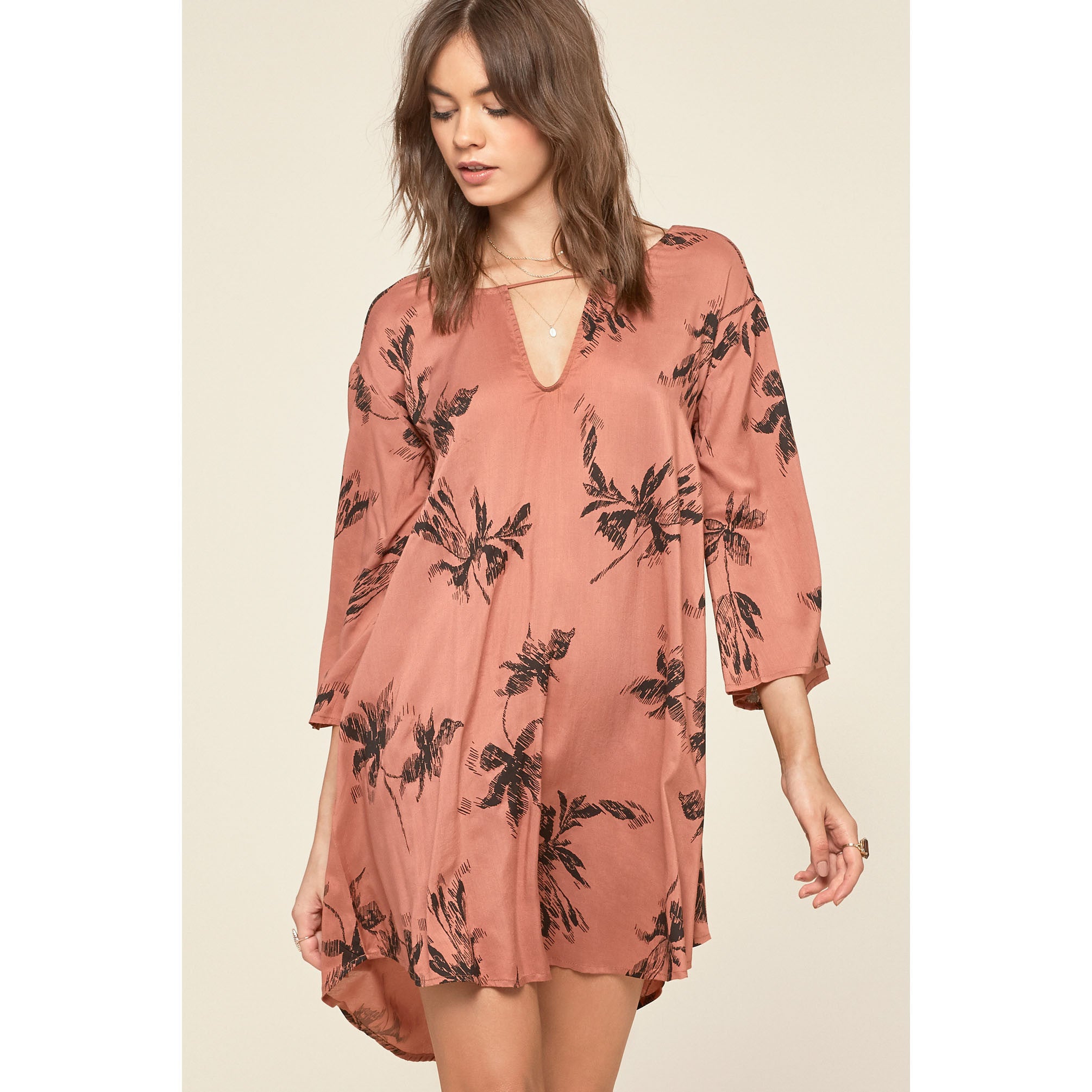 Amuse Society's Jasmine Dress is a printed flat woven mini featuring a shaped hem and keyhole details. Throw this go-to on over your suit for a beach look or pair with your favorite booties for a chic bar outfit!