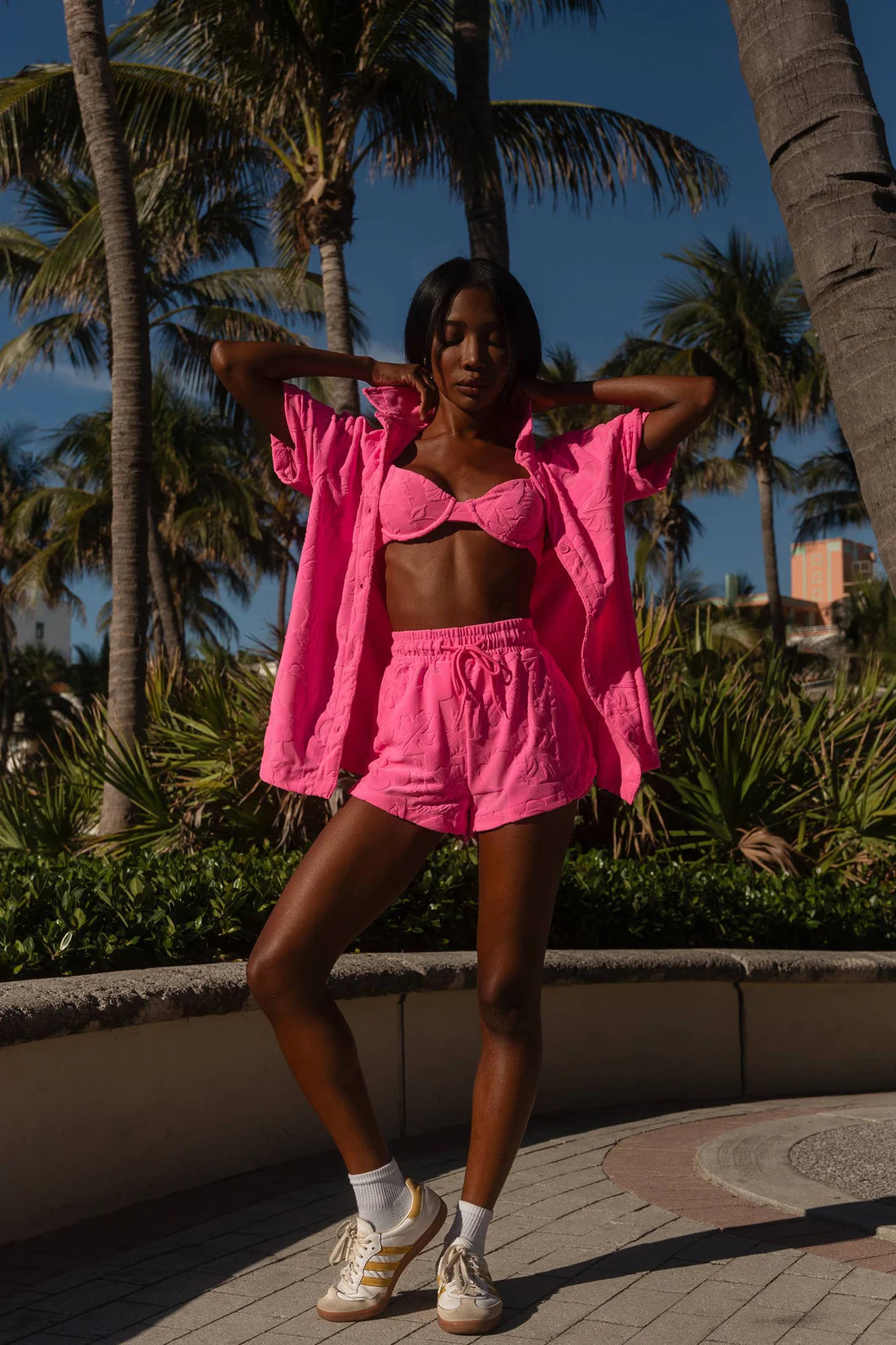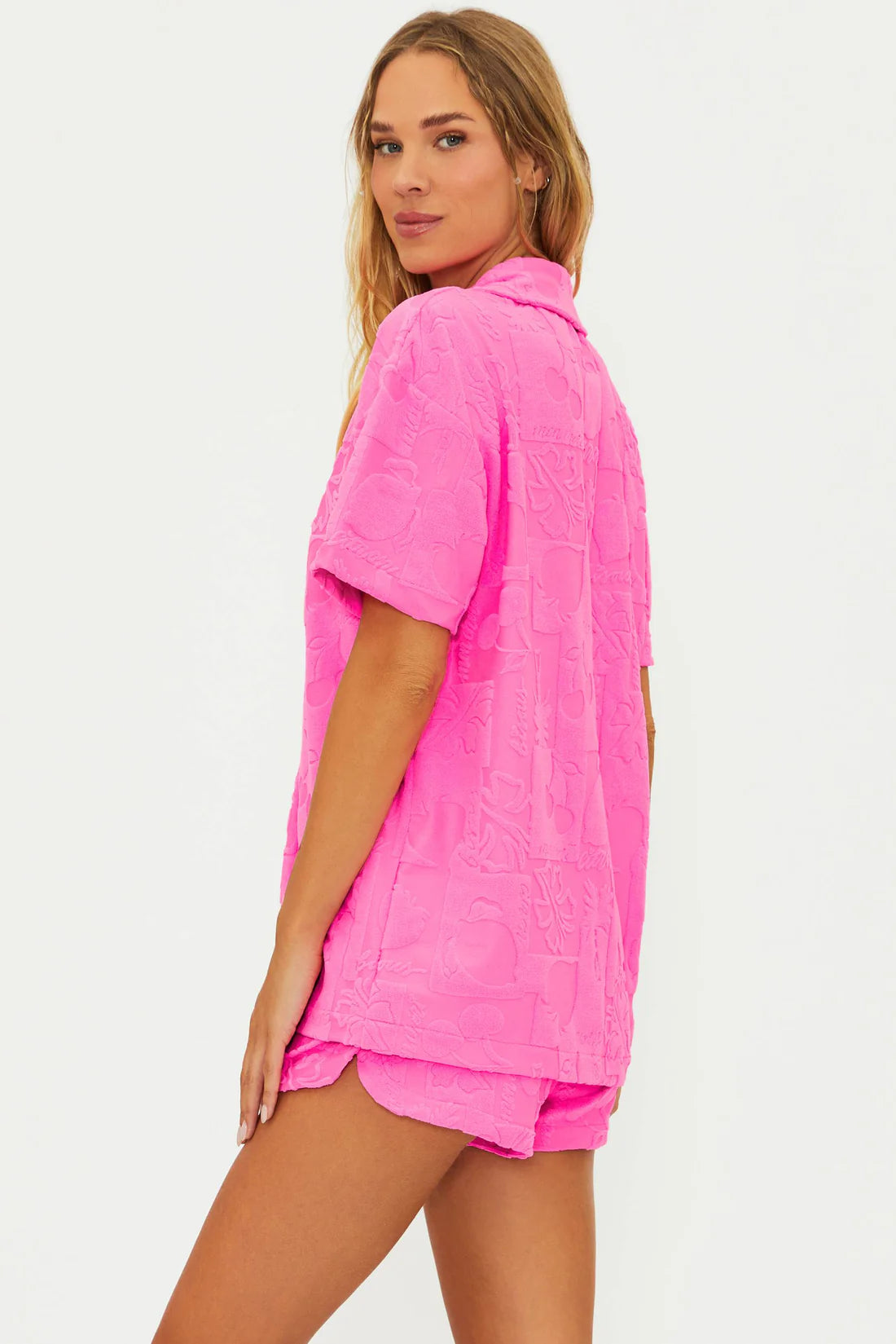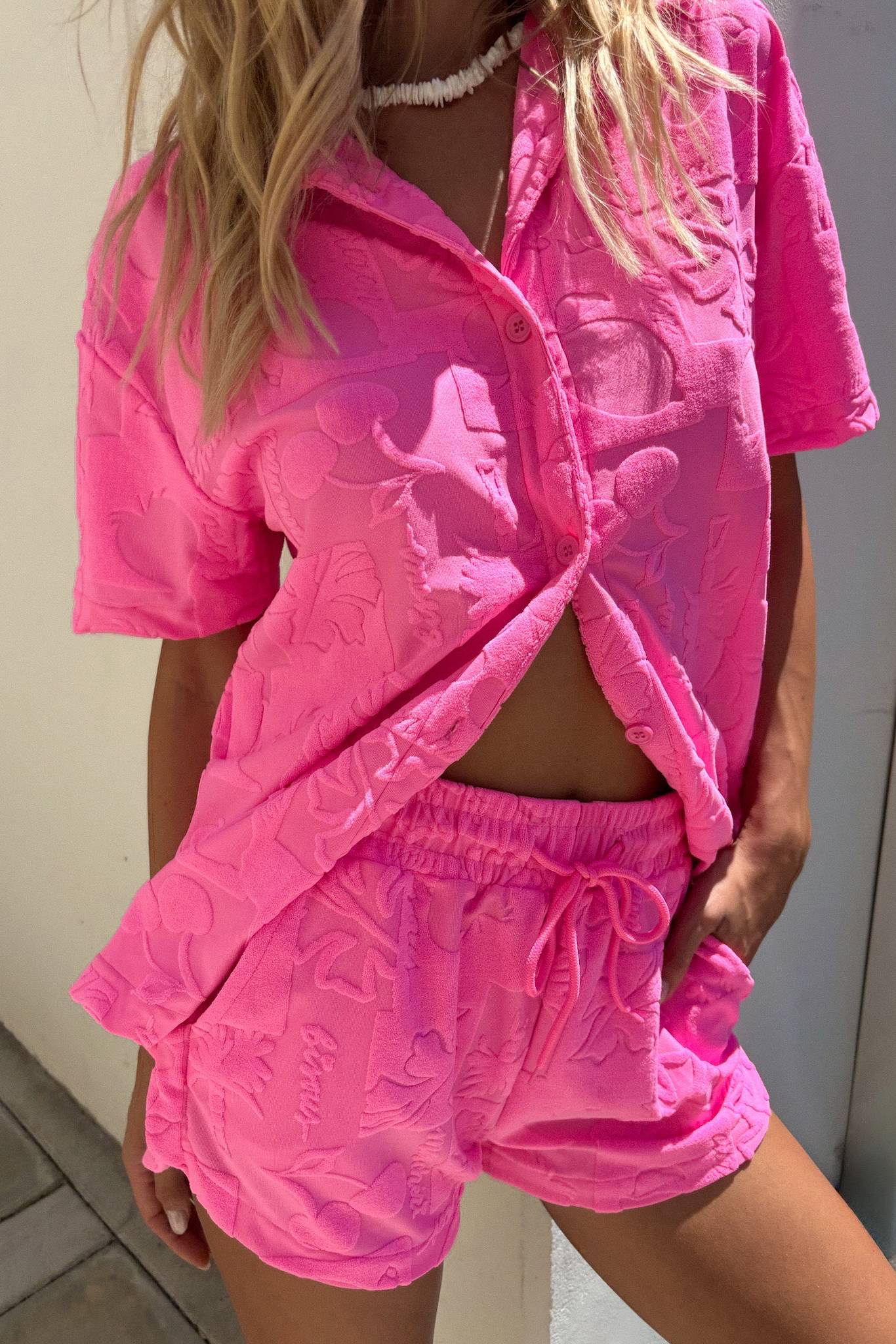 Beach Riot's Kiara Short in Strawberry Stand Terry is the perfect match to the Mabel Shirt. This terry number features a textured fabric in a neon pink colorway for a fun & comfortable summer fit. Also pairs with the Athena One Piece.